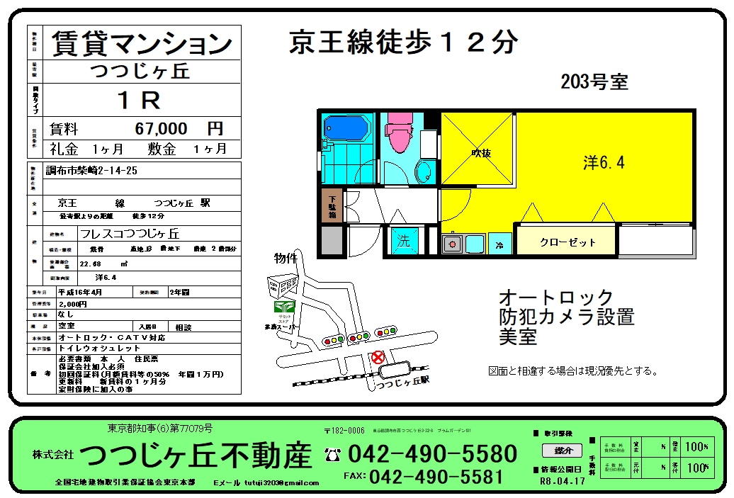 住所:調布市西つつじケ丘3-32-8 プラムガーデン101
